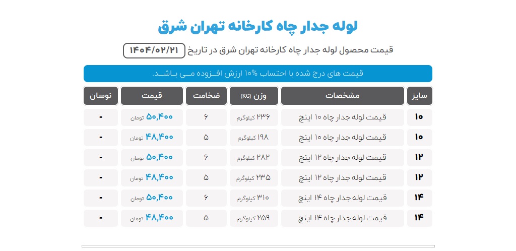 قیمت لوله جدار چاه 10 اینچ کالوپ