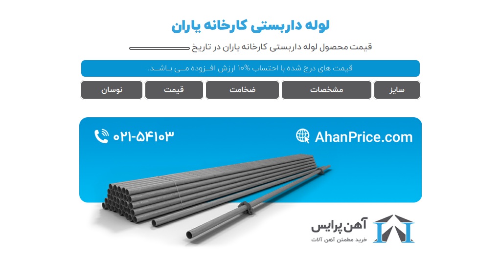 لوله داربستی یاران یکی از انواع لولههای صنعتی است که در بازار آهن عرضه میشود و همواره مشتریان خاص خودش را دارد. قیمت لوله داربستی یاران معمولاً از قیمت لوله داربست سایر کارخانهها که در بازار ایران وجود دارند گرانتر است.