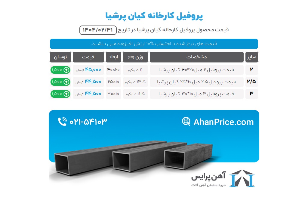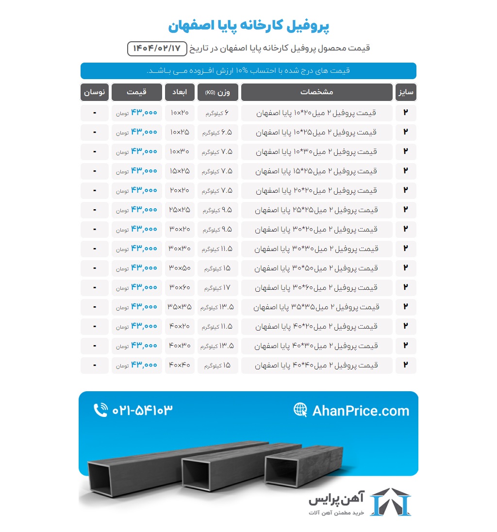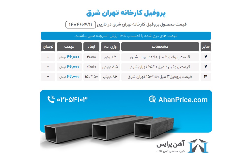 علاوهبر آنچه گفته شد مشتریان عزیز میتوانند با شمارهگیری 02154103 برای اطلاع از قیمتپروفیل آهن و دریافت مشاوره رایگان با کارشناسان حرفهای ما در ارتباط باشند.