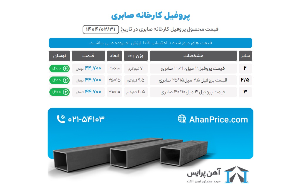 قیمت پروفیل امروز همانطور که در سطور بالا نیز اشاره شد، تحت تأثیر پارامترهای مختلفی روزانه نوسانات متعددی را تجربه میکند. استعلام آخرین قیمت پروفیل امروز هنگام خرید این محصول مهمترین دغدغه سازندگان و پیمانکاران است اگرچه توجه به کیفیت پروفیل نیز از مهمترین معیارهای خرید پروفیل است که هزینههای پروژه را در بلندمدت تحت تأثیر قرار میدهد.